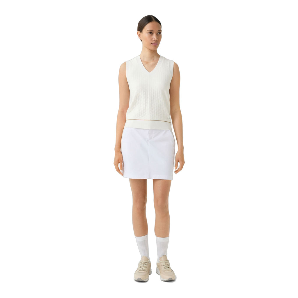 Material: 100% Polyester (recycelt), technischer Twill mit 4-Wege-Stretch und dauerhaft wasserabweisender Ausrüstung