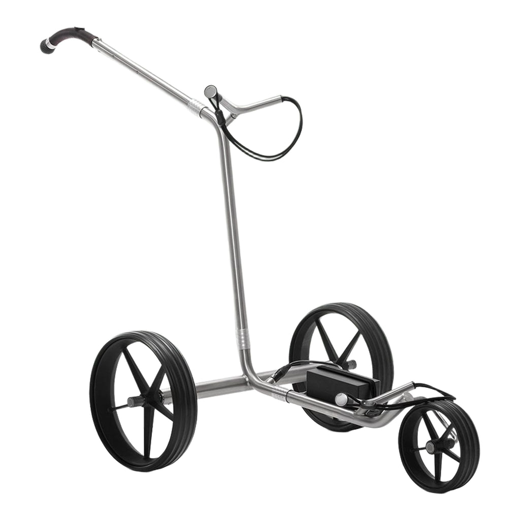 Der TiCad Goldfinger Elektrotrolley definiert Eleganz und Leistung auf dem Golfplatz neu. Gefertigt aus edlem, satiniertem Titan, besticht er durch seine robuste Konstruktion und sein zeitloses Design. Die fortschrittliche Drehgriffsteuerung erlaubt eine mühelose und intuitive Bedienung, während die integrierte Vorlauffunktion eine präzise Positionierung des Trolleys ermöglicht. Ausgestattet mit langlebigen GFK-Rädern und einem leistungsstarken Lithium-Ionen-Akku, der bis zu 27 Loch Reichweite bietet, meistert dieser Elektrotrolley souverän jede Herausforderung. Er ist die ideale Wahl für anspruchsvolle Golfer, die Wert auf erstklassige Verarbeitung, technische Raffinesse und unkomplizierten Komfort legen.